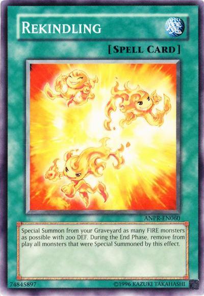 Special Summon from your GY as many FIRE monsters as possible with 200 DEF, but banish them during the End Phase of this turn.