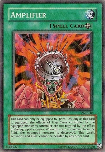 Equip only to ‘Jinzo’. While this card is equipped, the equipped monster’s effect does not negate the effects of its controller’s Trap Cards. When this card is removed from the field, destroy the equipped monster. This card’s activation and effect cannot be negated.