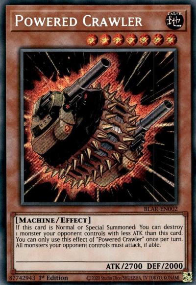 If this card is Normal or Special Summoned: You can destroy 1 monster your opponent controls with less ATK than this card. You can only use this effect of ‘Powered Crawler’ once per turn. All monsters your opponent controls must attack, if able.