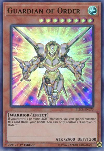 If you control 2 or more LIGHT monsters, you can Special Summon this card (from your hand). You can only control 1 ‘Guardian of Order’.