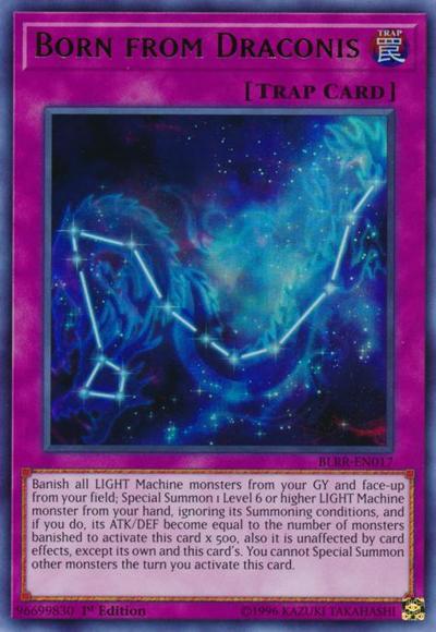 Banish all LIGHT Machine monsters from your GY and face-up from your field; Special Summon 1 Level 6 or higher LIGHT Machine monster from your hand, ignoring its Summoning conditions, and if you do, its ATK/DEF become equal to the number of monsters banished to activate this card x 500, also it is unaffected by card effects, except its own and this card’s. You cannot Special Summon other monsters the turn you activate this card.