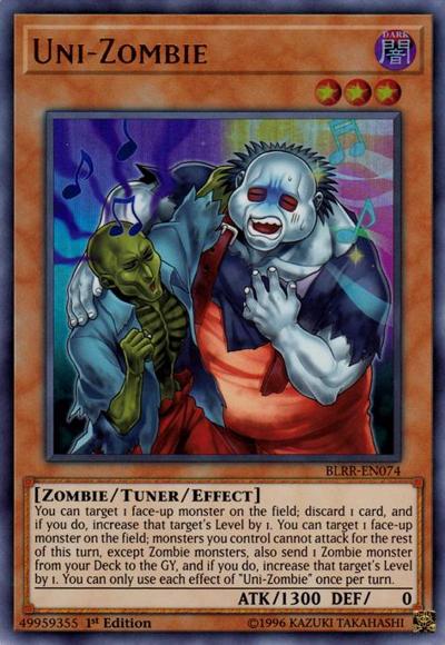 You can target 1 face-up monster on the field; discard 1 card, and if you do, increase that target’s Level by 1. You can target 1 face-up monster on the field; monsters you control cannot attack for the rest of this turn, except Zombie monsters, also send 1 Zombie monster from your Deck to the GY, and if you do, increase that target’s Level by 1. You can only use each effect of ‘Uni-Zombie’ once per turn.