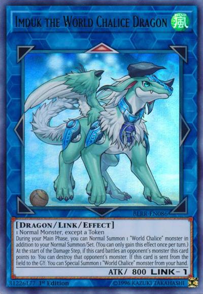 1 Normal Monster, except a TokenDuring your Main Phase, you can Normal Summon 1 ‘World Chalice’ monster in addition to your Normal Summon/Set. (You can only gain this effect once per turn.) At the start of the Damage Step, if this card battles an opponent’s monster this card points to: You can destroy that opponent’s monster. If this card is sent from the field to the GY: You can Special Summon 1 ‘World Chalice’ monster from your hand.