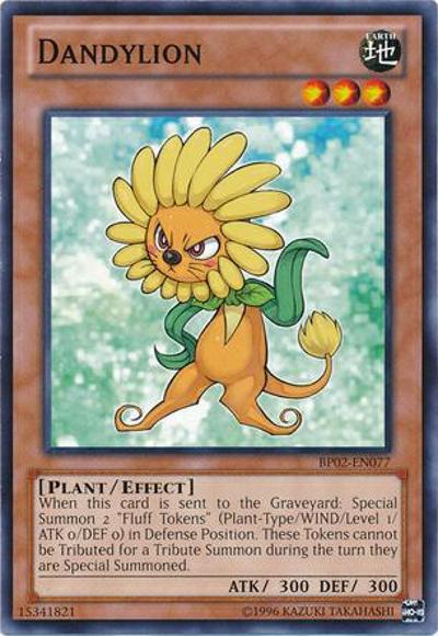 If this card is sent to the Graveyard: Special Summon 2 ‘Fluff Tokens’ (Plant-Type/WIND/Level 1/ATK 0/DEF 0) in Defense Position. These Tokens cannot be Tributed for a Tribute Summon during the turn they are Special Summoned.