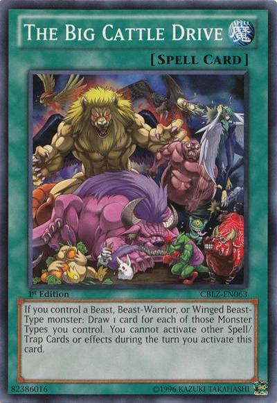 If you control a Beast, Beast-Warrior, or Winged Beast-Type monster: Draw 1 card for each of those Monster Types you control. You cannot activate other Spell/Trap Cards or effects during the turn you activate this card.