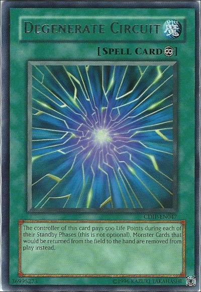The controller of this card pays 500 Life Points during each of their Standby Phases (this is not optional). Monster Cards that would be returned from the field to the hand are removed from play instead.