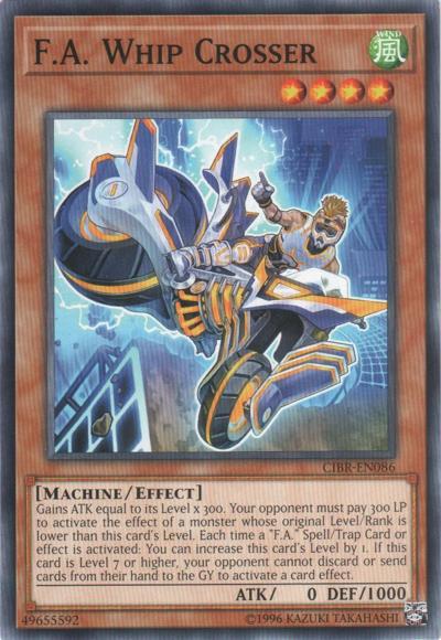 Gains ATK equal to its Level x 300. Your opponent must pay 300 LP to activate the effect of a monster whose original Level/Rank is lower than this card’s Level. Each time a ‘F.A.’ Spell/Trap Card or effect is activated: You can increase this card’s Level by 1. If this card is Level 7 or higher, your opponent cannot discard or send cards from their hand to the GY to activate a card effect.