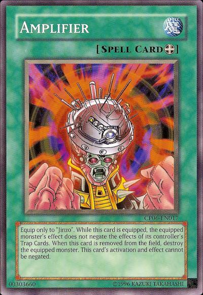 Equip only to ‘Jinzo’. While this card is equipped, the equipped monster’s effect does not negate the effects of its controller’s Trap Cards. When this card is removed from the field, destroy the equipped monster. This card’s activation and effect cannot be negated.
