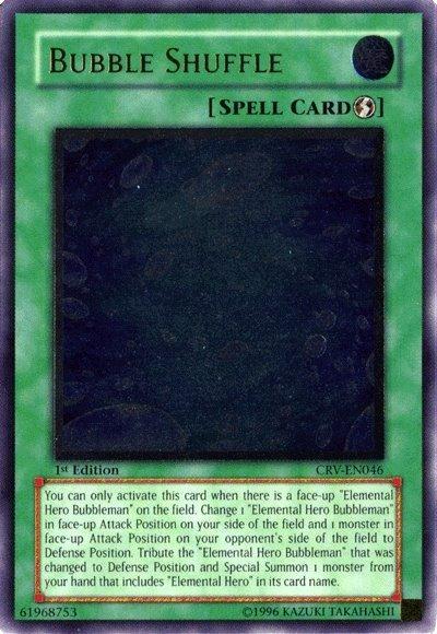 Target 1 face-up Attack Position ‘Elemental HERO Bubbleman’ you control and 1 face-up Attack Position monster your opponent controls; change both those targets to Defense Position, then Tribute that ‘Elemental HERO Bubbleman’, then Special Summon 1 ‘Elemental HERO’ monster from your hand.