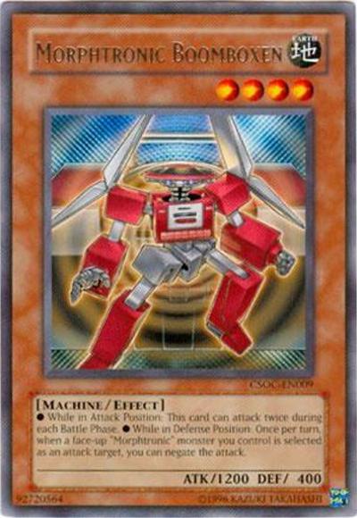 ● While in Attack Position, this card can attack twice during each Battle Phase.● Once per turn, while in Defense Position, when a face-up ‘Morphtronic’ monster you control is targeted for an attack: You can negate the attack.