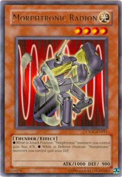 ● While in Attack Position: ‘Morphtronic’ monsters you control gain 800 ATK. ● While in Defense Position: ‘Morphtronic’ monsters you control gain 1000 DEF.