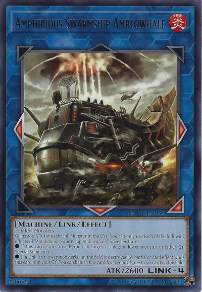 2+ Effect MonstersGains 200 ATK for each Link Monster in the GYs. You can only use each of the following effects of ‘Amphibious Swarmship Amblowhale’ once per turn.● If this card is destroyed: You can target 1 Link-3 or lower monster in either GY; Special Summon it.● If a Link-3 or lower monster(s) on the field is destroyed by battle or card effect while this card is in your GY: You can banish this card from your GY; destroy 1 card on the field.