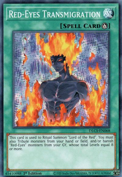 This card is used to Ritual Summon ‘Lord of the Red’. You must also Tribute monsters from your hand or field, and/or banish ‘Red-Eyes’ monsters from your Graveyard, except ‘Red-Eyes B. Chick’, whose total Levels equal 8 or more.