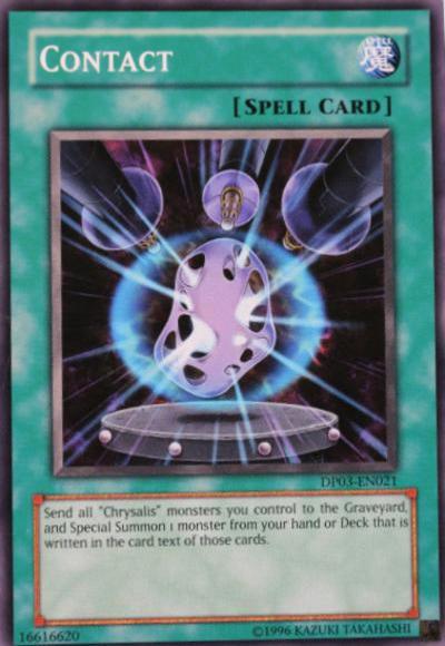 Send all ‘Chrysalis’ monsters you control to the Graveyard, and Special Summon 1 monster from your hand or Deck that is written in the card text of those cards.