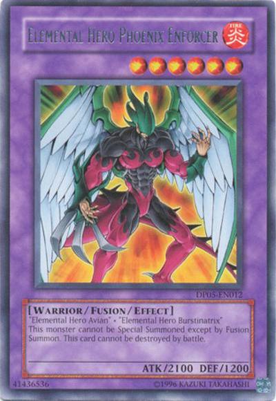 ‘Elemental HERO Avian’ + ‘Elemental HERO Burstinatrix’Must be Fusion Summoned and cannot be Special Summoned by other ways. This card cannot be destroyed by battle.