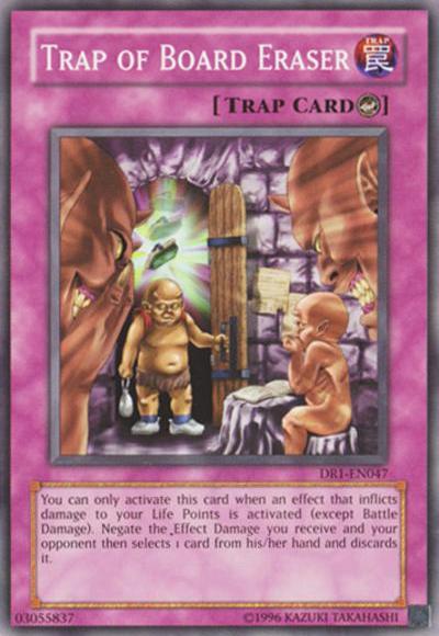 You can only activate this card when an effect that inflicts damage to your Life Points is activated (except Battle Damage). Negate the Effect Damage you receive and your opponent then selects 1 card from his/her hand and discards it.