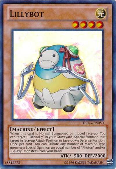 When this card is Normal Summoned or flipped face-up: You can target 1 ‘Orbital 7’ in your Graveyard; Special Summon that target in face-up Attack Position or face-down Defense Position. Once per turn: You can Tribute any number of Machine-Type monsters; Special Summon an equal number of ‘Photon’ and/or ‘Galaxy’ monsters from your hand.