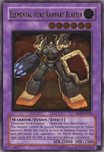 ‘Elemental HERO Clayman’ + ‘Elemental HERO Burstinatrix’Must be Fusion Summoned and cannot be Special Summoned by other ways. This card can attack while in face-up Defense Position, but only if your opponent controls no monsters, and if it does, this card’s ATK is halved during damage calculation only.