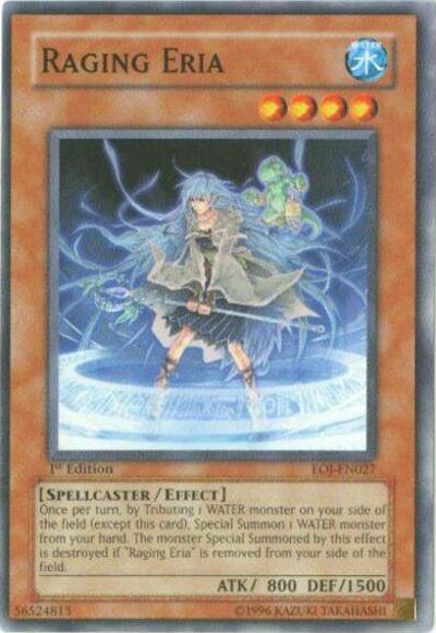 Once per turn, you can Tribute 1 WATER monster (except this card) to Special Summon 1 WATER monster from your hand. The monster Special Summoned by this effect is destroyed if ‘Raging Eria’ is removed from your side of the field.