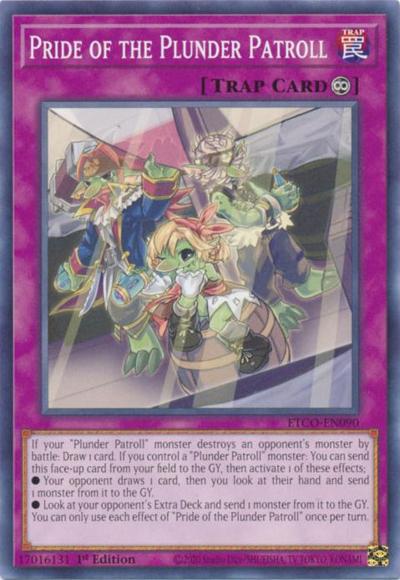 If your ‘Plunder Patroll’ monster destroys an opponent’s monster by battle: Draw 1 card. If you control a ‘Plunder Patroll’ monster: You can send this face-up card from your field to the GY, then activate 1 of these effects;● Your opponent draws 1 card, then you look at their hand and send 1 monster from it to the GY.● Look at your opponent’s Extra Deck and send 1 monster from it to the GY.You can only use each effect of ‘Pride of the Plunder Patroll’ once per turn.