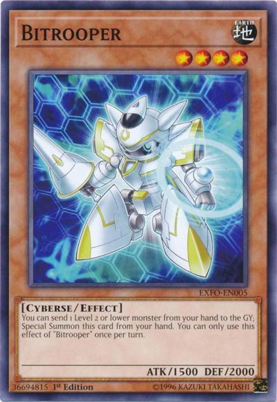You can send 1 Level 2 or lower monster from your hand to the GY; Special Summon this card from your hand. You can only use this effect of ‘Bitrooper’ once per turn.