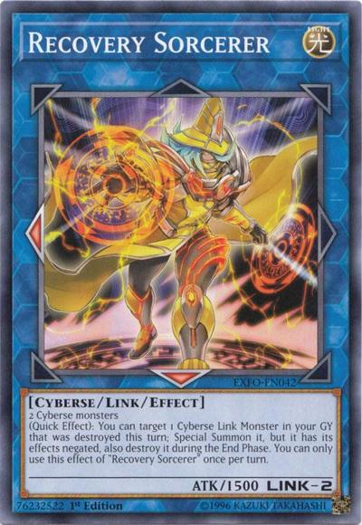 2 Cyberse monsters(Quick Effect): You can target 1 Cyberse Link Monster in your GY that was destroyed this turn; Special Summon it, but it has its effects negated, also destroy it during the End Phase. You can only use this effect of ‘Recovery Sorcerer’ once per turn.