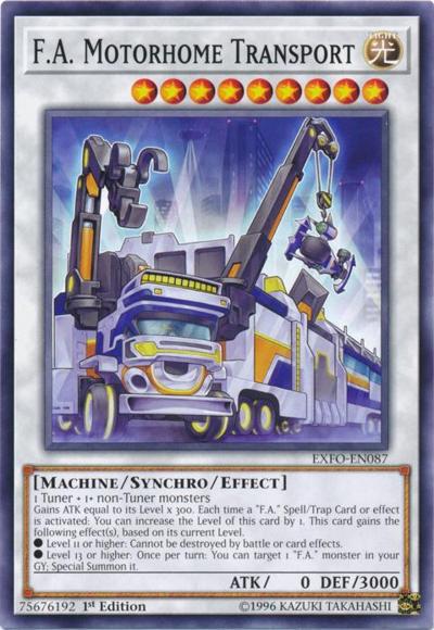 1 Tuner + 1+ non-Tuner monstersGains ATK equal to its Level x 300. Each time a ‘F.A.’ Spell/Trap Card or effect is activated: You can increase this card’s Level by 1. This card gains the following effect(s), based on its current Level.● Level 11 or higher: Cannot be destroyed by battle or card effects.● Level 13 or higher: Once per turn: You can target 1 ‘F.A.’ monster in your GY; Special Summon it.