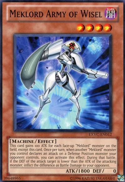 This card gains 100 ATK for each ‘Meklord’ monster on the field, except this card. Once per turn, when another ‘Meklord’ monster you control declares an attack on a Defense Position monster your opponent controls: You can activate this effect; during that battle, if it attacks a Defense Position monster, inflict piercing battle damage to your opponent.