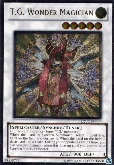 1 Tuner + 1+ non-Tuner ‘T.G.’ monstersIf this card is Synchro Summoned: Target 1 Spell/Trap on the field; destroy that target. If this card on the field is destroyed: Draw 1 card. Once per Chain, during your opponent’s Main Phase, you can (Quick Effect): Immediately after this effect resolves, Synchro Summon using this card you control.