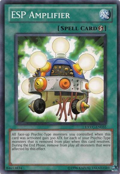 All face-up Psychic-Type monsters you controlled when this card was activated gain 300 ATK for each of your Psychic-Type monsters that is removed from play when this card resolves. During the End Phase, remove from play all monsters that were affected by this effect.