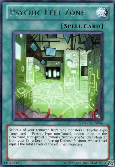 Select 2 of your removed from play monsters (1 Psychic-Type Tuner and 1 Psychic-Type non-Tuner), return them to the Graveyard, and Special Summon 1 Psychic-Type Synchro Monster from your Extra Deck in face-up Defense Position, whose Level equals the total Levels of the returned monsters.