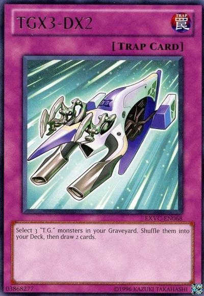 Target 3 ‘T.G.’ monsters in your Graveyard; shuffle all 3 into your Deck, then draw 2 cards.