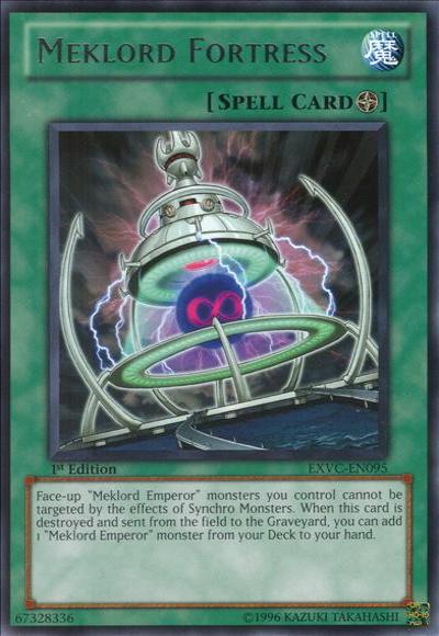 ‘Meklord Emperor’ monsters you control cannot be targeted by the effects of Synchro Monsters. When this card on the field is destroyed and sent to the Graveyard: You can add 1 ‘Meklord Emperor’ monster from your Deck to your hand.