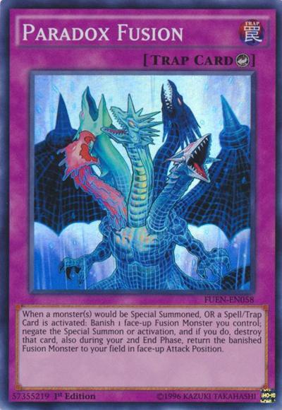 When a monster(s) would be Special Summoned, OR a Spell/Trap Card is activated: Banish 1 face-up Fusion Monster you control; negate the Special Summon or activation, and if you do, destroy that card, also during your 2nd End Phase, return the banished Fusion Monster to your field in face-up Attack Position.