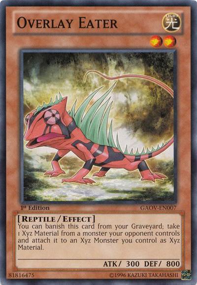 You can banish this card from your Graveyard; take 1 Xyz Material from a monster your opponent controls and attach it to an Xyz Monster you control as Xyz Material.
