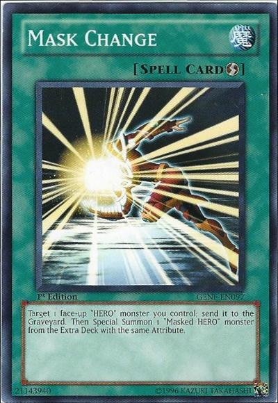 Target 1 ‘HERO’ monster you control; send it to the GY, also, after that, if it left the field by this effect, Special Summon 1 ‘Masked HERO’ monster from your Extra Deck with the same Attribute that the sent monster had when it was on the field (its original Attribute, if face-down).