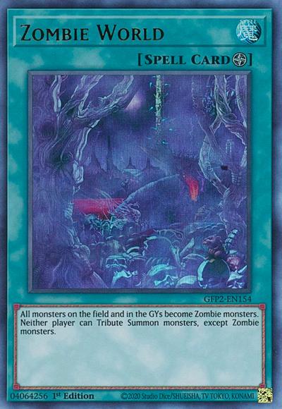 All monsters on the field and in the GYs become Zombie monsters. Neither player can Tribute Summon monsters, except Zombie monsters.