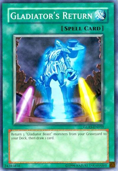 Target 3 ‘Gladiator Beast’ cards in your Graveyard; shuffle all 3 targets into the Deck, then draw 1 card.