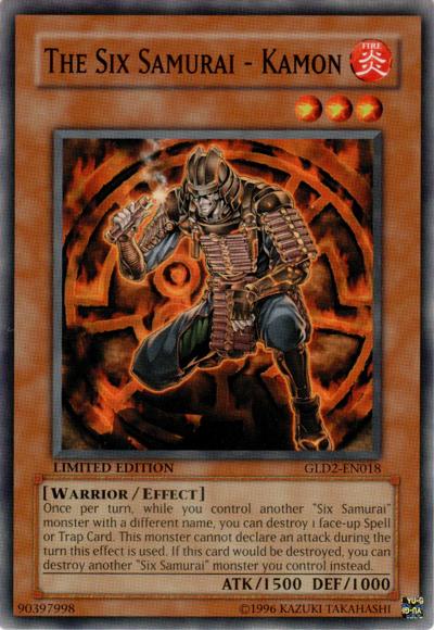 Once per turn: You can target 1 face-up Spell/Trap Card; destroy that target. You must control a face-up ‘Six Samurai’ monster with a different name to activate and to resolve this effect. This card cannot declare an attack during the turn this effect is activated. If this card would be destroyed, you can destroy another face-up ‘Six Samurai’ monster you control instead.