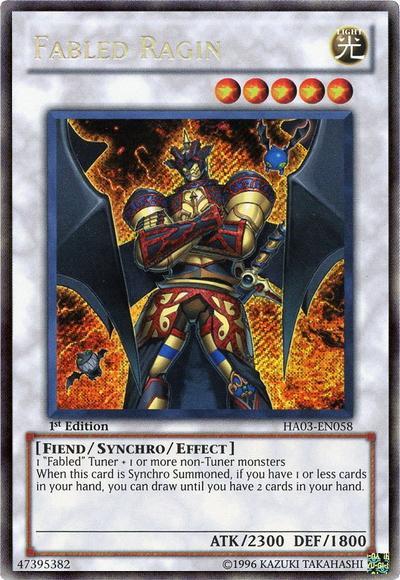 1 ‘Fabled’ Tuner + 1 or more non-Tuner monsters When this card is Synchro Summoned, if you have 1 or less cards in your hand, you can draw until you have 2 cards in your hand.