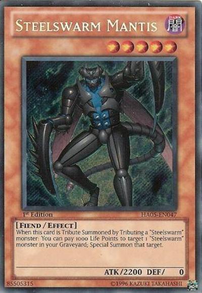 When this card is Tribute Summoned by Tributing a ‘Steelswarm’ monster: You can pay 1000 Life Points to target 1 ‘Steelswarm’ monster in your Graveyard; Special Summon that target.