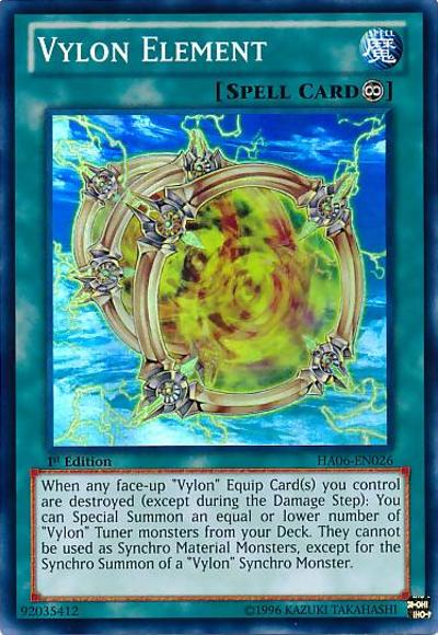 When any face-up ‘Vylon’ Equip Card(s) you control are destroyed (except during the Damage Step): You can Special Summon an equal or lower number of ‘Vylon’ Tuner monsters from your Deck. They cannot be used as Synchro Material Monsters, except for the Synchro Summon of a ‘Vylon’ Synchro Monster.