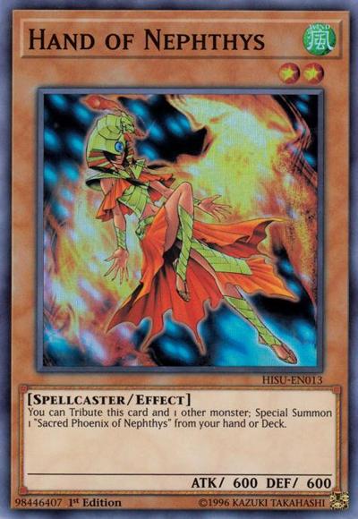 You can Tribute this card and 1 other monster; Special Summon 1 ‘Sacred Phoenix of Nephthys’ from your hand or Deck.