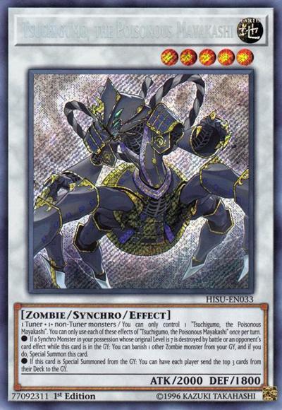 1 Tuner + 1+ non-Tuner monsters / You can only control 1 ‘Tsuchigumo, the Poisonous Mayakashi’. You can only use each of these effects of ‘Tsuchigumo, the Poisonous Mayakashi’ once per turn.● If a Synchro Monster in your possession whose original Level is 7 is destroyed by battle or an opponent’s card effect while this card is in the GY: You can banish 1 other Zombie monster from your GY, and if you do, Special Summon this card.● If this card is Special Summoned from the GY: You can have each player send the top 3 cards from their Deck to the GY.