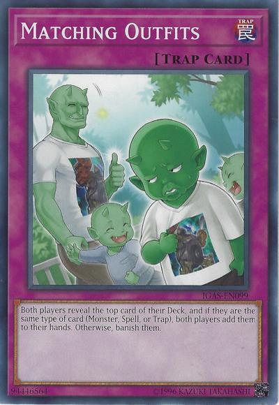 Both players reveal the top card of their Deck, and if they are the same type of card (Monster, Spell, or Trap), both players add them to their hands. Otherwise, banish them.