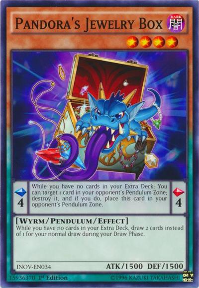 Pendulum EffectWhile you have no cards in your Extra Deck: You can target 1 card in your opponent’s Pendulum Zone; destroy it, and if you do, place this card in your opponent’s Pendulum Zone.Monster EffectWhile you have no cards in your Extra Deck, draw 2 cards instead of 1 for your normal draw during your Draw Phase.