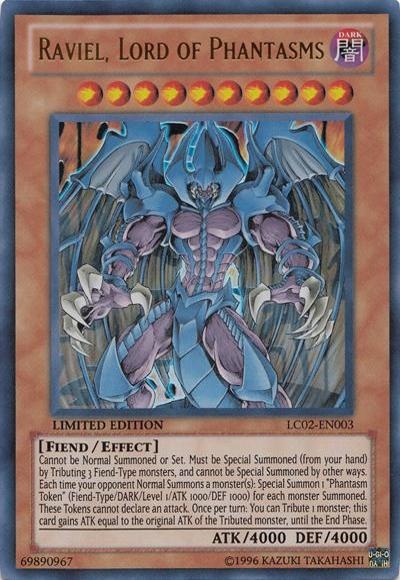 Cannot be Normal Summoned/Set. Must be Special Summoned (from your hand) by Tributing 3 Fiend-Type monsters, and cannot be Special Summoned by other ways. If your opponent Normal Summons a monster(s): Special Summon 1 ‘Phantasm Token’ (Fiend-Type/DARK/Level 1/ATK 1000/DEF 1000) for each monster Summoned, but it cannot declare an attack. Once per turn: You can Tribute 1 monster; this card gains ATK equal to the original ATK of the Tributed monster until the end of this turn.