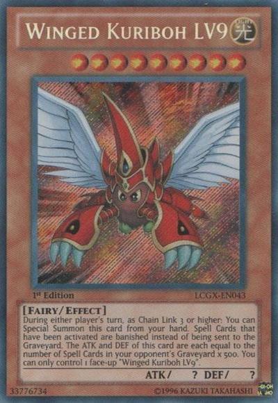 Activate only as Chain Link 3 or higher (Quick Effect): You can Special Summon this card from your hand. Spell Cards that have been activated are banished instead of being sent to the GY. The ATK/DEF of this card are each equal to the number of Spells in your opponent’s GY x 500. You can only control 1 ‘Winged Kuriboh LV9’.