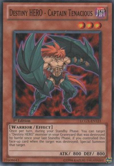Once per turn, during your Standby Phase: You can target 1 ‘Destiny HERO’ monster in your Graveyard that was destroyed by battle since your last Standby Phase, if you controlled this face-up card when the target was destroyed; Special Summon that target.