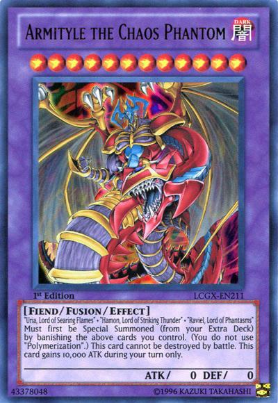 ‘Uria, Lord of Searing Flames’ + ‘Hamon, Lord of Striking Thunder’ + ‘Raviel, Lord of Phantasms’Must first be Special Summoned (from your Extra Deck) by banishing the above cards you control. (You do not use ‘Polymerization’.) Cannot be destroyed by battle. This card gains 10,000 ATK during your turn only.